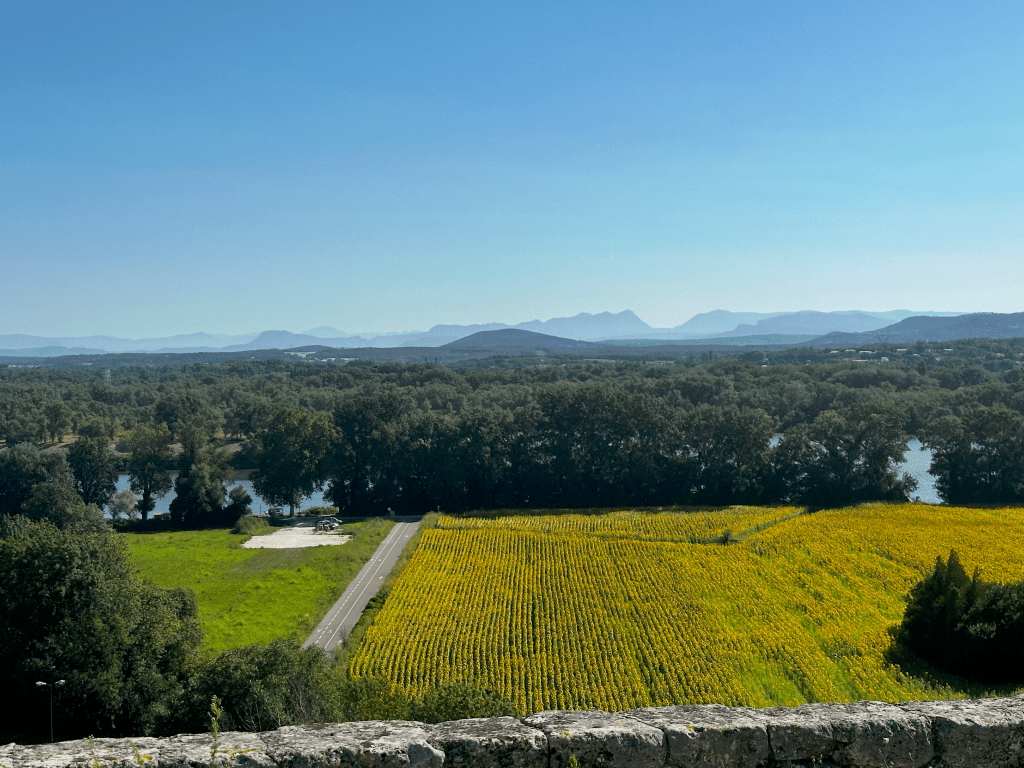 The highlight of our visit was the climb up to the Belvédère de Châteauvieux. This panoramic viewpoint offered breathtaking vistas of Viviers, the Rhône River, and the surrounding Ardèche landscape. Sprawling sunflower fieldsadded vibrant splashes of color to the scenery.